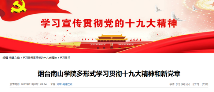 “灯塔-党建在线”网站转发我校“多形式学习贯彻十九大精神和新党章”链接: