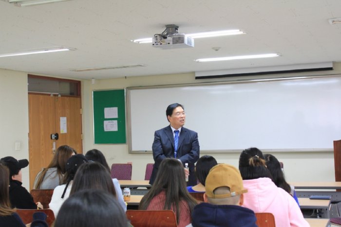 吴国华校长在忠北大学与我校交流学生座谈