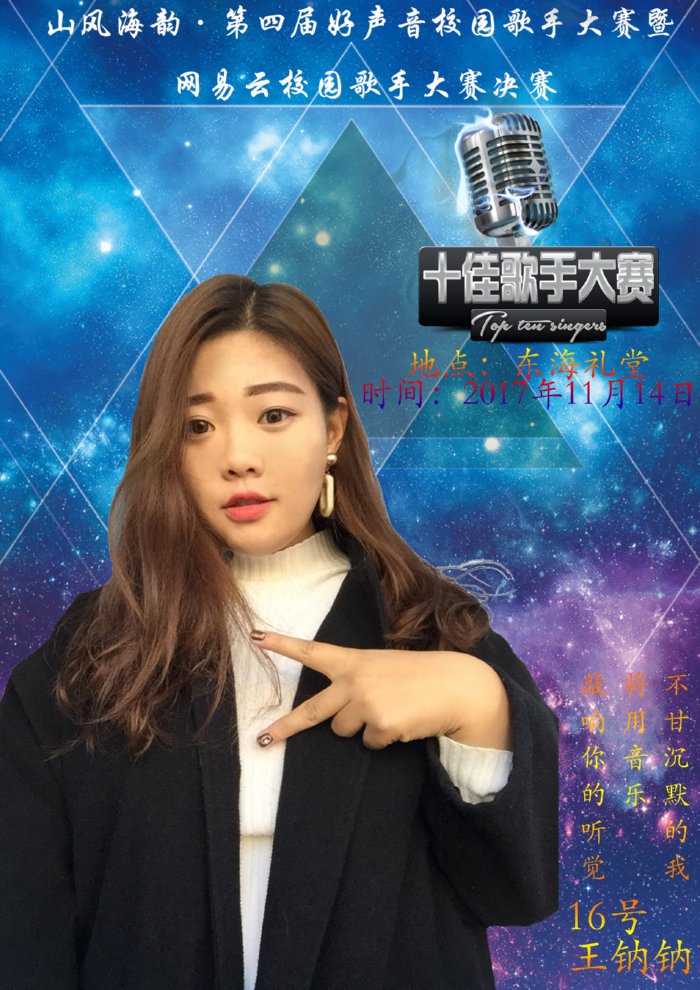 大赛冠军  音乐表演172班的王钠钠演唱的曲目是《她说》,细腻的声线,动人的演唱展现了很高的出了歌唱水平。