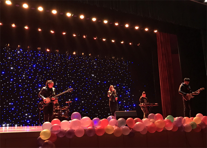 大赛第六名  英语1504班的白晓阳子,她演唱的曲目是《rolling in the deep》,她和她的团队精彩的表演,让在场的所有人仿佛置身于大型演唱会之中!