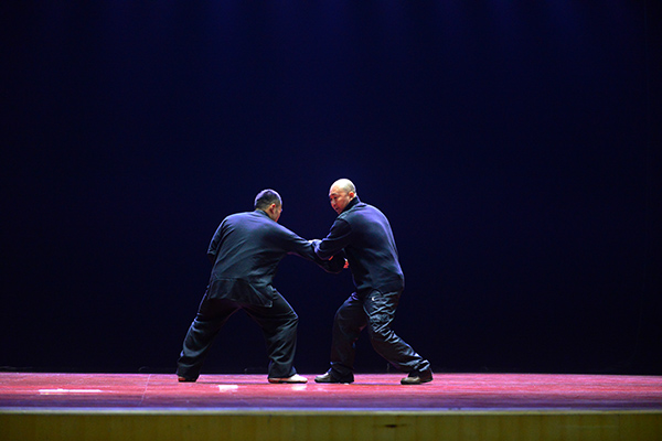 六合螳螂拳传承人张道锦和他三个学生带来精彩的表演,并由他讲解了一些关于螳螂拳的基本要领。