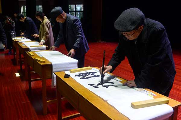 欣赏完螳螂拳表演,书画协会的嘉宾亲笔为本次活动送上了“非遗传承”的祝福,希望我们宝贵的非物质文化遗产能够薪火相传。