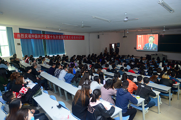 10月18日上午,bet28365365备用网站全体校领导,各职能处室负责人,以及全校没有上课任务的师生,集中收看中国共产党第十九次全国代表大会开幕会盛况。