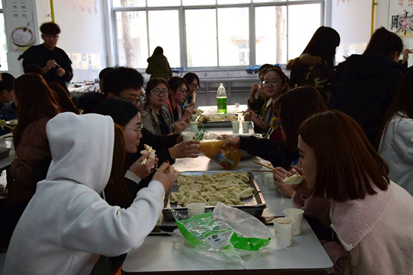 12月22日,冬至日,南山学院校团委组织学生包饺子、吃饺子过传统节日,同时在南山校区行政楼前举行剪纸、汉服表演等文化节目,体验中华传统文化。