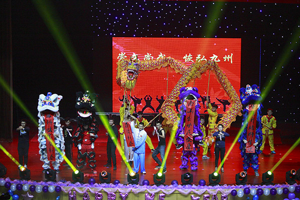 伴随着由大学生艺术团带来的《拜年歌曲大联唱》拉开了晚会的序幕。随即由音乐学院带来的情景表演《看山看水看中国》展现了中国的美,世界的美;大学生话剧团带来的小品《囧囧航空》让全场观众开怀大笑;由武术协会带来的武术表演《龙狮欢腾》,把中华武术名扬海外,中华儿女,笑傲天下,将武术作为中国的精魂;当青春与激情舞动,活力与动感融合,当音乐响起时,让我们跟随音乐一起观赏健美操社团带来的《舞动的青春》。最为精彩的便是由各学院教师代表带来的歌曲串烧《我们的歌》展现出我校教师不一样的风采,也看到了工作外老师们更文艺亲近的一面;音诗画《青春的使命》展现了我校学子为了爱,为了梦想,为了打造百年南山,向着使命出发;动听的歌曲,优美的舞蹈,搞笑的小品等,将晚会的气氛一次又一次的推向了高潮,整场晚会,温情与火热并举,形式多样,精彩纷呈。