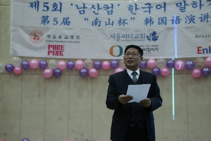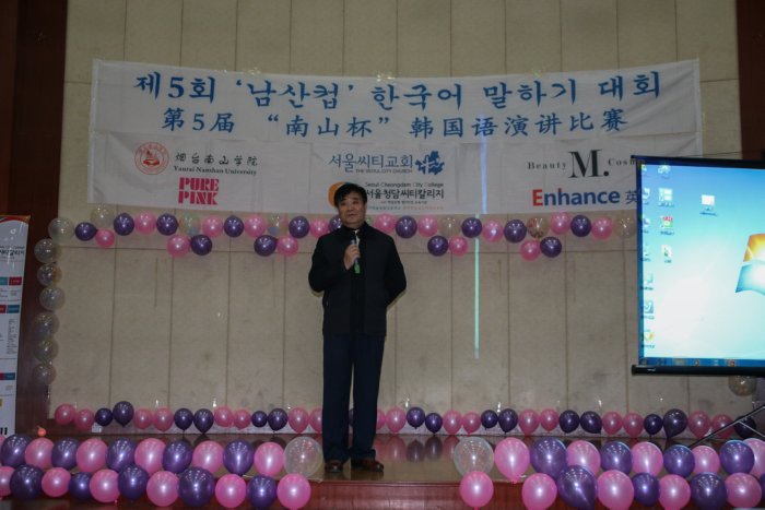 11月1日,由THE SEOUL CITY CHURCH、 Beauty M. Cosmetic、PURE PINK、Seoul Cheongdam City College、Enhance联合主办,由我校人文学院外语系韩国语教研室承办的第五届“南山杯”韩国语演讲比赛圆满落幕。王慧颖同学《不抛弃、不放弃》荣获特等奖;《我10年后的样子》蒋迪同学荣获一等奖,沈钊纯同学、袁梦和朱红丽同学荣获了二、三等奖。