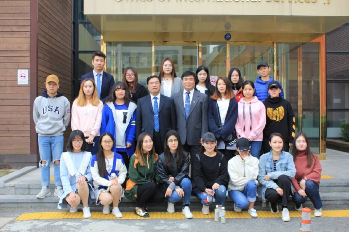 学校访问代表团与我校在忠北大学交流学生合影留念